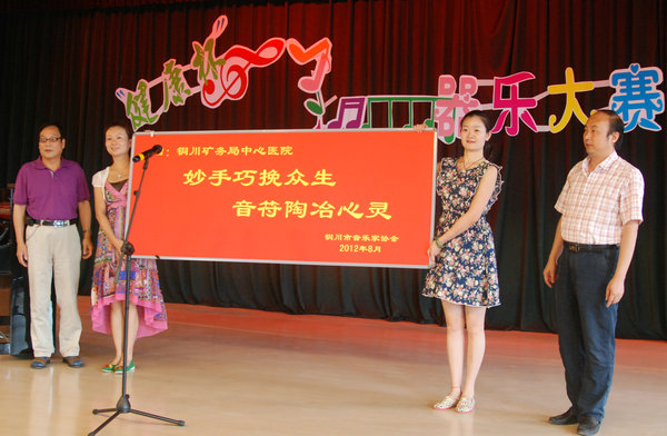 此次大賽由銅川市文學(xué)藝術(shù)界聯(lián)合會(huì)、銅川市音樂家協(xié)會(huì)共同舉辦,旨在進(jìn)一步提高我市器樂演奏水平,發(fā)現(xiàn)和培養(yǎng)人才,選拔參加全省決賽選手,推動(dòng)我市音樂藝術(shù)事業(yè)的發(fā)展和繁榮。來自全市70余名優(yōu)秀選手共分為少年組、兒童組、幼兒組、青年組進(jìn)行角逐。賽前,銅川礦務(wù)局中心醫(yī)院黨委副書記、紀(jì)委書記、工會(huì)主席張小社發(fā)表了熱情洋溢的講話,銅川市音樂家協(xié)會(huì)還為推動(dòng)市音樂藝術(shù)事業(yè)發(fā)展作出突出貢獻(xiàn)的銅川礦務(wù)局中心醫(yī)院贈(zèng)與了“妙手巧挽眾生,音符陶冶心靈”的牌匾。
