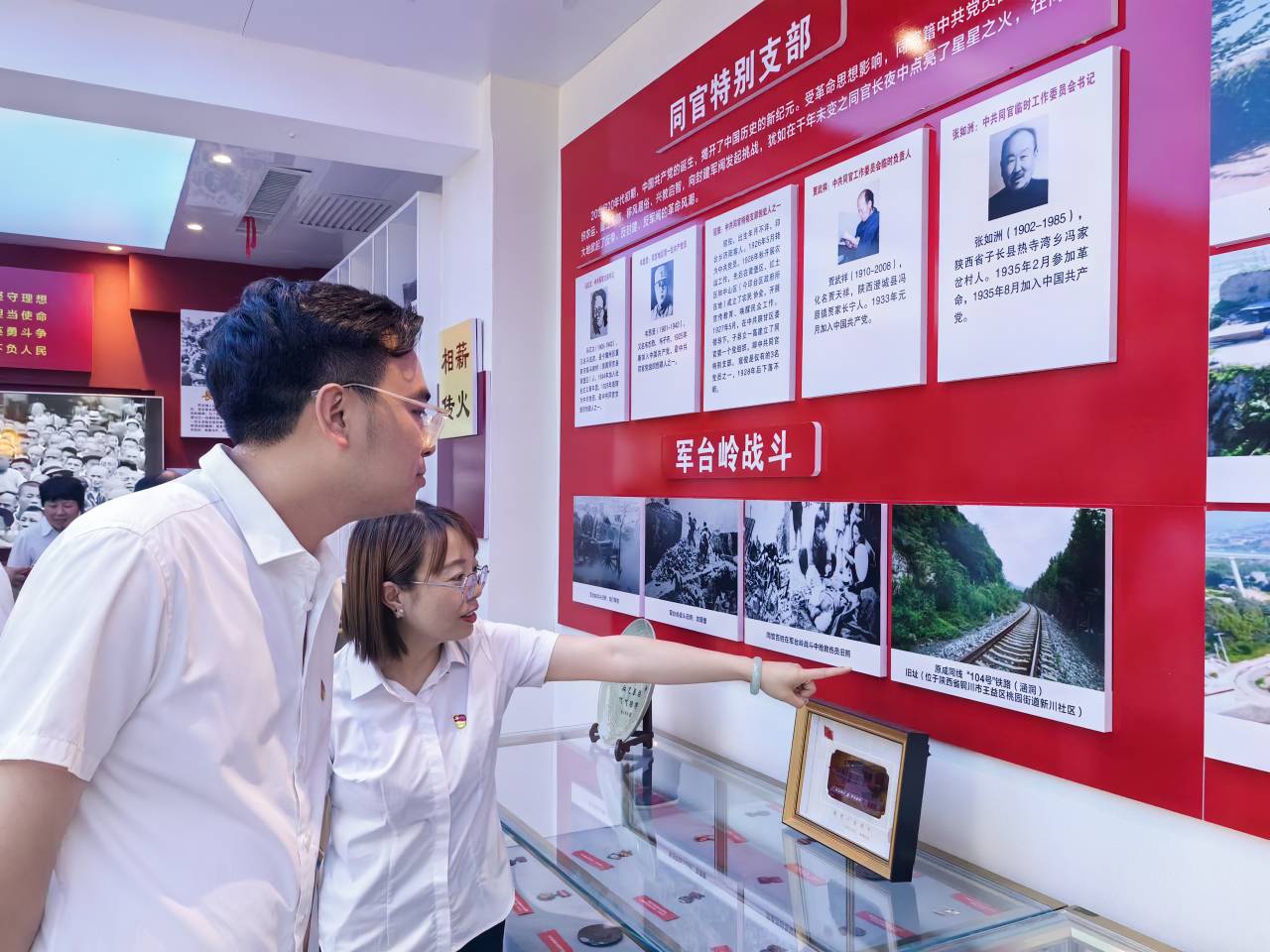活動(dòng)當(dāng)天,全體黨員在柿樹(shù)溝社區(qū)的院中聆聽(tīng)了該社區(qū)的概況及2023年三件大事、十件實(shí)事詳述,隨后在工作人員帶領(lǐng)下,先后參觀了傳統(tǒng)文化館、家風(fēng)館、小樹(shù)苗成長(zhǎng)館、婦女兒童關(guān)懷廳、黨史教育館、徐崇林書(shū)屋、秦風(fēng)崗文學(xué)館、多功能服務(wù)大廳、圖書(shū)室等9個(gè)展館。在黨史館中大家聆聽(tīng)著不同年代的紅色故事,展放的紅色物品也使黨員們產(chǎn)生了濃厚的興趣,一枚枚戰(zhàn)斗紀(jì)念章、一本本小人書(shū)、一件件老物件都在無(wú)聲的講述著他們的故事,深深吸引著大家的目光,仿佛時(shí)光又回到了那波瀾壯闊的年代,使大家重溫了光輝的革命歷史,接受了黨性教育。并與柿樹(shù)溝社區(qū)的黨員同志共同進(jìn)行了宣誓承諾。