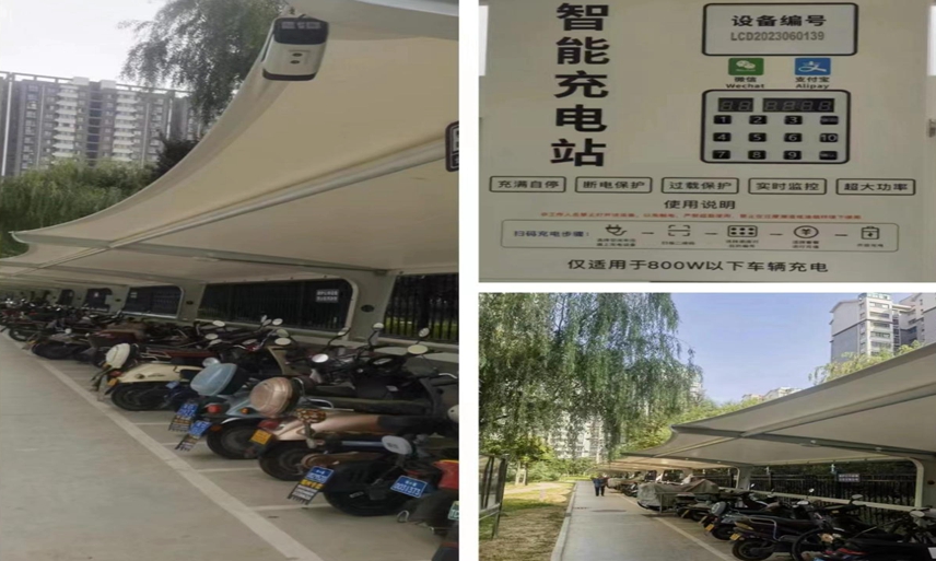 隨著入住人員的增多,該小區(qū)電動自行車的停放已成為該小區(qū)丞待解決的一大問題。針對這一問題,該中心立即展開摸底調研,根據(jù)住戶不同停車需求和客觀實際,積極聯(lián)系有關部門進行協(xié)調,成立了電動車充電棚建設工作領導小組,經(jīng)過優(yōu)化選址、移栽綠植、平整場地、搭建遮陽棚、安裝充電裝置、防護欄等一系列程序,兩個多月緊鑼密鼓的行動,新建的11處電動車充電棚600個停車位完成了安裝及驗收工作,有效的解決了居民充電難題。