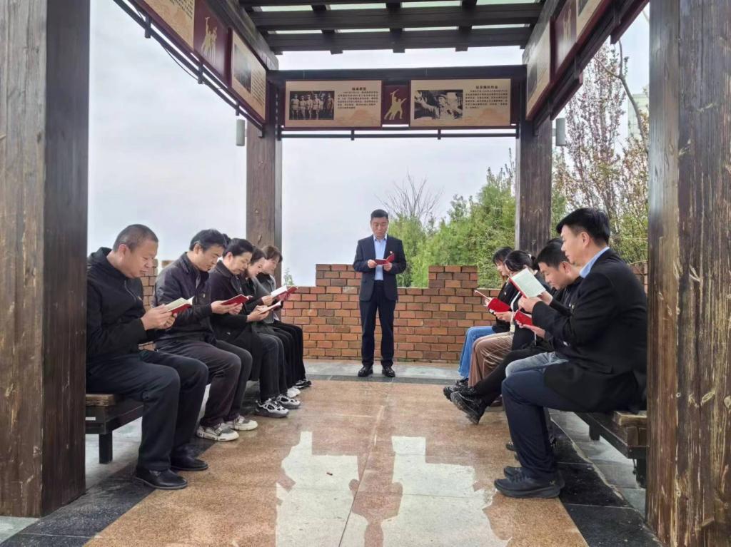 活動(dòng)現(xiàn)場(chǎng),黨員神情肅穆,懷著無(wú)比崇敬的心情來(lái)到軍臺(tái)嶺戰(zhàn)斗遺址。在軍臺(tái)嶺紀(jì)念碑前,大家向革命烈士三鞠躬并敬獻(xiàn)菊花,全體肅立默哀,表達(dá)對(duì)革命英烈的敬仰和懷念之情。面對(duì)黨旗,黨員干部重溫入黨誓詞莊嚴(yán)宣誓,牢記初心使命,增強(qiáng)了黨員干部為共產(chǎn)主義事業(yè)奮斗終身的信念與決心