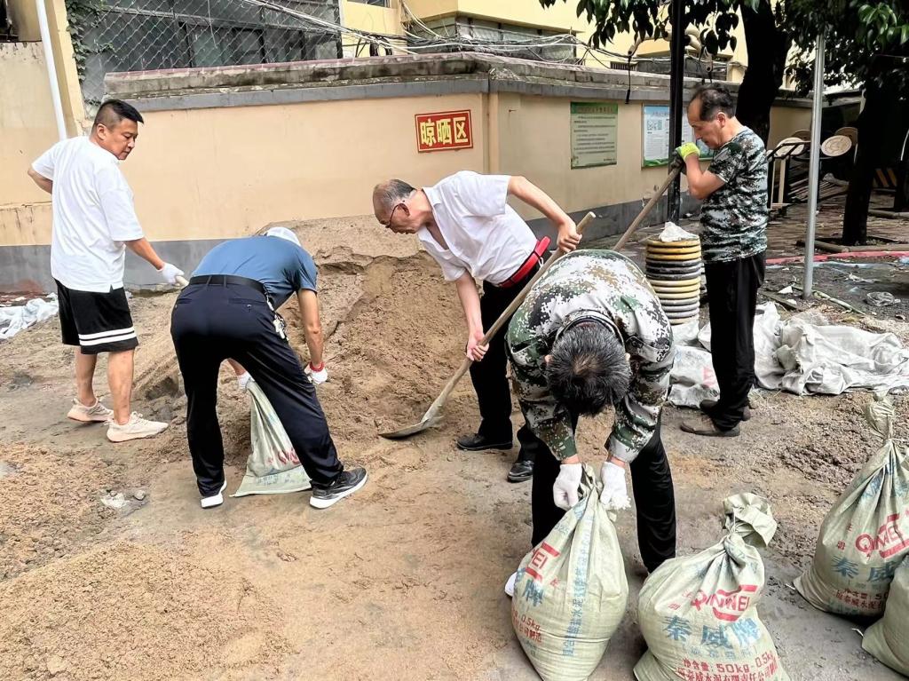 該中心運行部人員分工有序、相互配合,他們手拿鐵锨,到達裝沙地點,精神抖擻地投入到了“裝沙”工作中。有人負責撐開編織袋,有人負責裝填沙子,有人負責搬運,有人負責擺放,工作始終保持著井井有條的狀態(tài),經(jīng)過數(shù)小時的奮戰(zhàn),高效率地完成了沙袋的填裝任務(wù)。在氣溫30多度的大熱天里,即使他們汗水掛滿臉頰,浸透衣服,他們也沒有叫苦叫累,始終埋頭苦干,最終看著擺放整整齊齊的沙袋,他們臉上露出了驕傲的笑容。