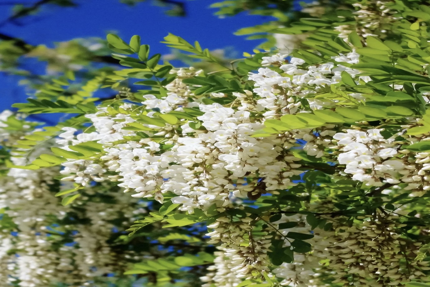 母親提議,不如把老屋的院子好好修繕一番。于是,我和父親為老槐樹修剪枯枝,施肥澆水。時間慢慢流逝,轉(zhuǎn)眼間又到了槐花盛開的季節(jié),這顆老槐樹枝頭竟然冒出了嫩綠的新芽,竟以頑強的生命力,重新煥發(fā)出勃勃生機!一朵朵潔白的小槐花悄然綻放,像一串串小巧的風鈴,在風中輕輕晃動。郁郁蔥蔥的枝葉在微風中輕輕搖曳,仿佛在訴說著過往的故事。