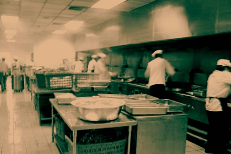 臨時(shí)女工們輪流上夜班,打我來(lái)半年多,班長(zhǎng)兼廚師一直是老張,女工們戲稱其“男婦女主任”。晚上7:30到崗,打豆?jié){、蒸豆腐腦、熬稀飯、蒸花卷等等瑣碎的活計(jì)到零點(diǎn)左右才能干完,緊接著就陸續(xù)有工人來(lái)吃飯。