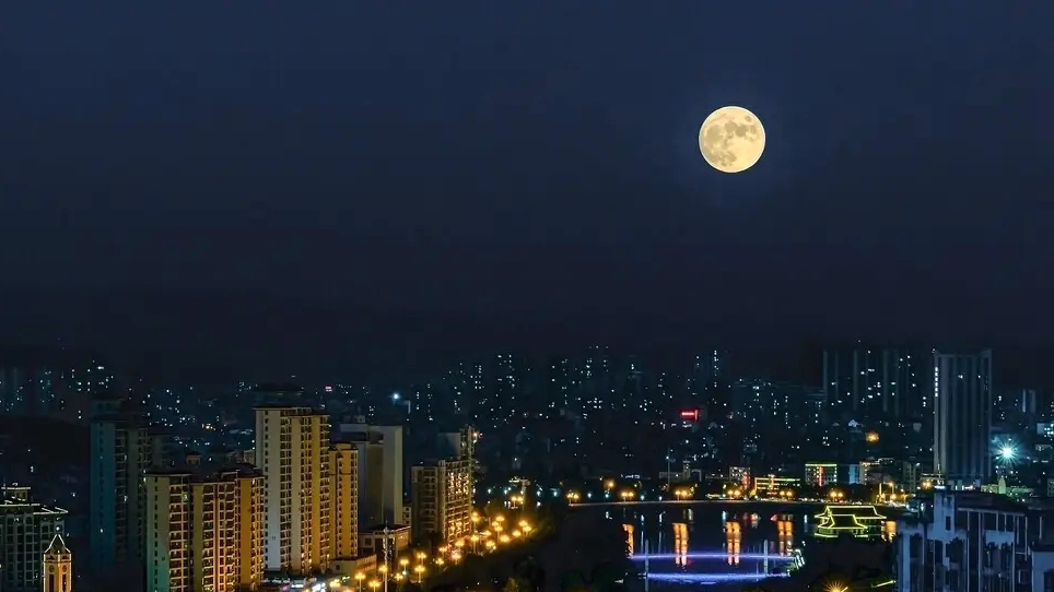 一輪明月掛上了樹梢,