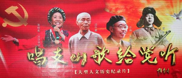 中國(guó)共產(chǎn)黨建黨95周年之即,由中國(guó)音協(xié)名譽(yù)主席趙季平提寫片名的大型人文歷史紀(jì)錄片《唱支山歌給黨聽》在陜西銅川首映,紀(jì)錄片向觀眾展示了這支著名“山歌”背后鮮為人知的傳奇故事。