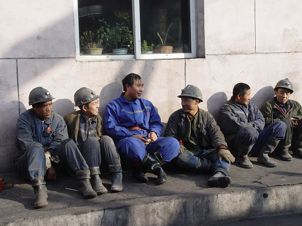 王成祥和井下礦工兄弟在一起
