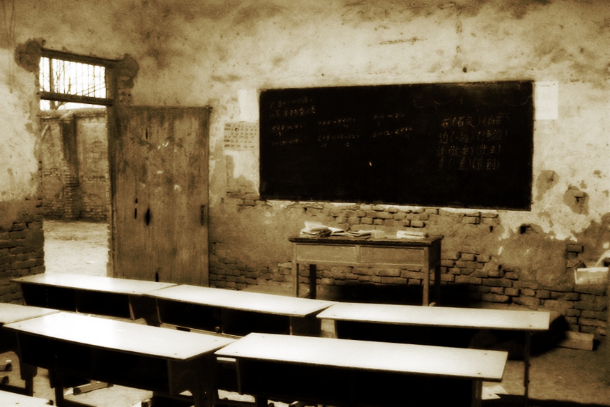 家鄉(xiāng)地處關(guān)中道與陜北高原過渡地帶偏北的一個小鄉(xiāng)鎮(zhèn),那里山梁起伏、溝壑縱橫,我的初中建于臺塬層疊的高梁之上,北邊與洛川隔溝相望,南面是一道陡直的大土坡,坡下連接著一條六七十米的土街道,街道兩邊多是平房,平常人較少,只有逢“二、七”過會趕集時,四鄰八鄉(xiāng)的人都擁擠到街道,才是最熱鬧的時候。學(xué)校建于上個世紀(jì)六十年代,校舍多是平房和窯洞,有七八間大平房和數(shù)十孔窯洞,磚瓦平房、木頭門窗,鑲嵌著幾塊玻璃,桌椅缺胳膊少腿是常有的事,有的教室千瘡百孔,一遇下雨天,是屋外大雨連著屋內(nèi)小雨。