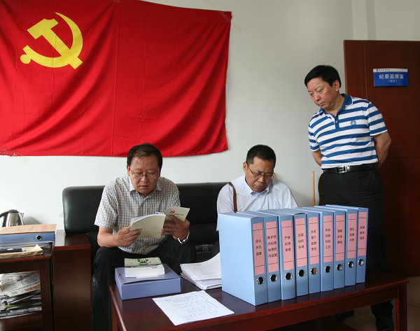 匯報(bào)結(jié)束后,檢查組一行對(duì)公司黨委會(huì)會(huì)議記錄、黨委工作臺(tái)賬、紀(jì)委工作臺(tái)賬、黨員領(lǐng)導(dǎo)干部記實(shí)手冊(cè),落實(shí)中央八項(xiàng)規(guī)定精神、糾正“四風(fēng)”工作的安排部署文件和監(jiān)督檢查資料,以及信訪件辦理資料進(jìn)行了集中查閱。