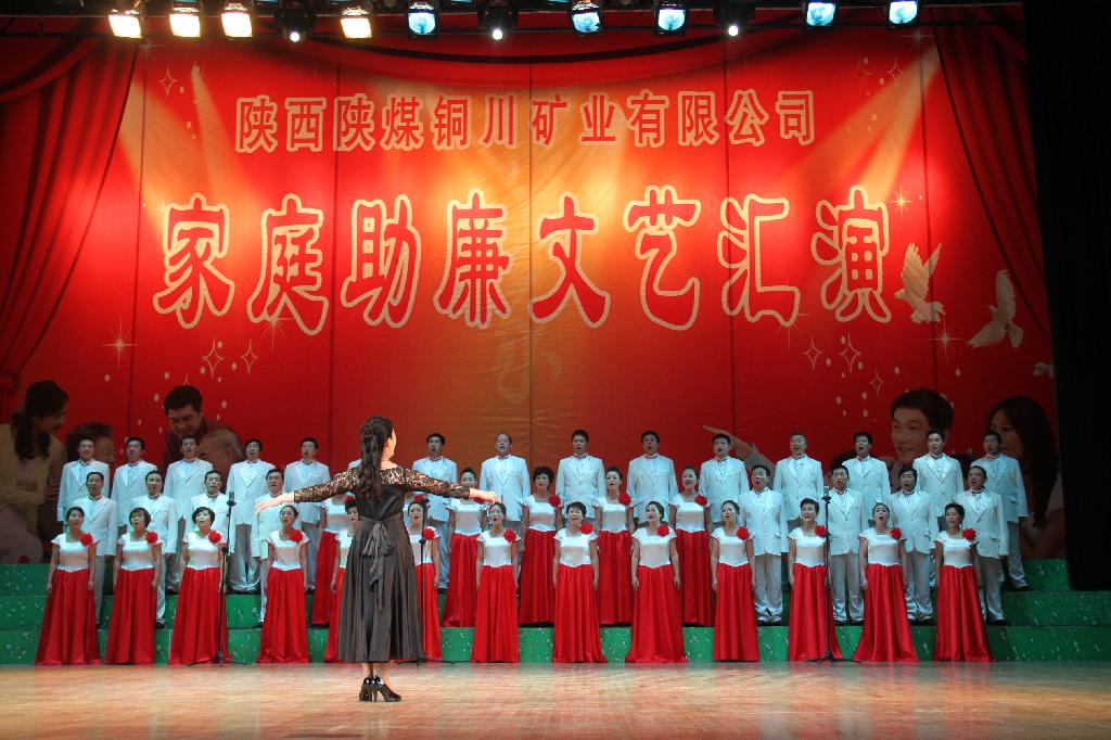 金秋絢爛頌清風,明月高歌唱廉潔。10月31日下午,由公司職工家屬自編、自導、自演的,富有極強銅煤廉潔文化特色的銅川礦業(yè)公司家庭助廉文藝匯演在銅煤礦工俱樂部隆重舉行。陜西省人民檢察院黨組成員、副檢察長呂萍,陜西省紀委政策研究室主任馮志文,陜煤化集團副總經(jīng)理朱周歧,銅川市人民檢察院黨組書記、檢察長趙亞光,陜煤化集團人力資源部部長李聰,陜煤化集團監(jiān)察室主任陳立民,銅川礦業(yè)公司領(lǐng)導郭寶輝、劉水利、劉啟科、徐捷、師同民、薛鳴、張志文,銅川實業(yè)公司總經(jīng)理李先鋒,陜西省人民檢察院相關(guān)領(lǐng)導,銅川市人民檢察院相關(guān)領(lǐng)導,以及銅川礦業(yè)公司各副總、機關(guān)各部室負責人、基層各單位黨政領(lǐng)導和基層單位職工家屬代表一起觀看了演出。