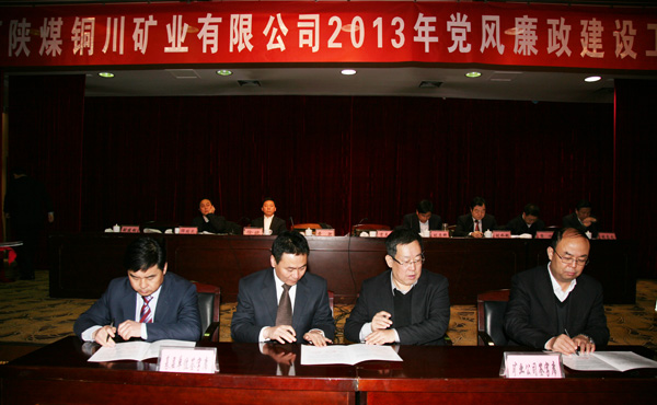 接著,由公司黨委書(shū)記黃河、總經(jīng)理宋志剛代表公司黨政,與各基層單位黨政簽訂2013年度黨風(fēng)廉政建設(shè)目標(biāo)責(zé)任書(shū)。