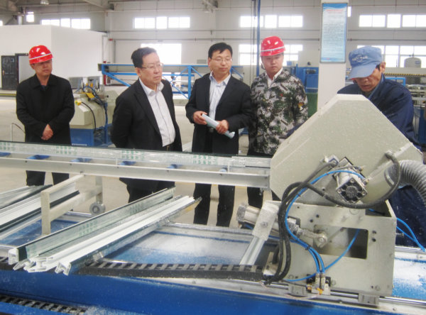 在欣塑公司,宋志剛總經理仔細查看了綜合樓、職工食堂以及各個車間的施工情況,重點了解了塑鋼門窗車間試生產情況,并詳細詢問了車間主要設備的價格、產品利潤、投資回收期等信息。
