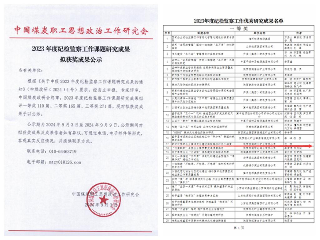 近日,在中煤政研紀檢監(jiān)察優(yōu)秀研究成果發(fā)布會上,公司紀委榮獲“2023年度紀檢監(jiān)察工作課題研究活動優(yōu)秀組織單位”命名表彰,此次活動是由中國煤炭職工思想政治工作研究會主辦,對紀檢監(jiān)察研究學組成員單位11個集體、547篇研究成果進行了表彰。
