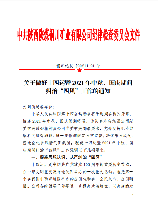 關(guān)于做好十四運(yùn)暨2021年中秋、國慶期間糾治“四風(fēng)”工作的通知