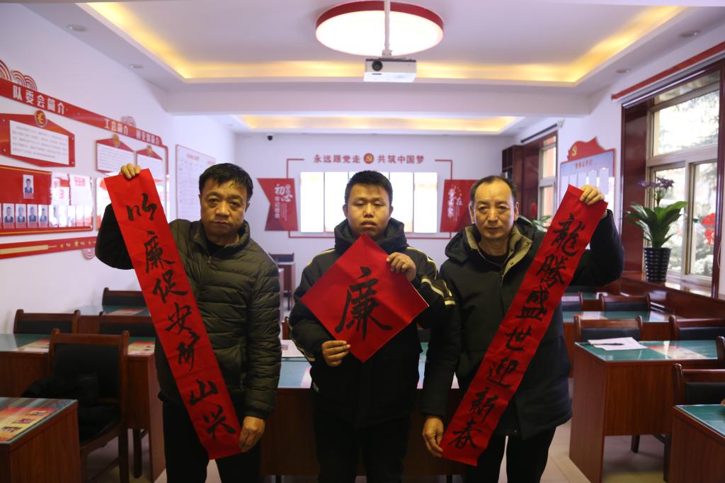 “清風(fēng)有意接新歲,廉韻無言潤礦山”“龍騰盛世迎新春,以廉促安礦山興”“爆竹聲聲辭舊歲,賀歲盈盈滿乾坤”等一幅幅極具礦山特色且富含新春氣息和廉潔教育意蘊的春聯(lián)躍然紙上?;顒蝇F(xiàn)場,礦區(qū)廣大書法愛好者揮毫潑墨,書廉送聯(lián),對仗工整的春聯(lián)和行云流水的字體引得廣大職工嘖嘖稱贊。充滿新春祝福、滿含廉潔教育的春聯(lián)從書法愛好者的筆下流淌而出,飄著濃濃的年味,帶著深深的祝福,為區(qū)隊班組送上廉味十足的春“廉”大餐。