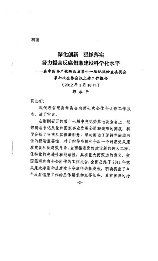 中共陜西陜煤銅川礦業(yè)有限公司紀(jì)律檢查委員會轉(zhuǎn)發(fā)省郭永平同志在陜西省十一屆紀(jì)律檢查委員會第七次全會上的工作報(bào)告
