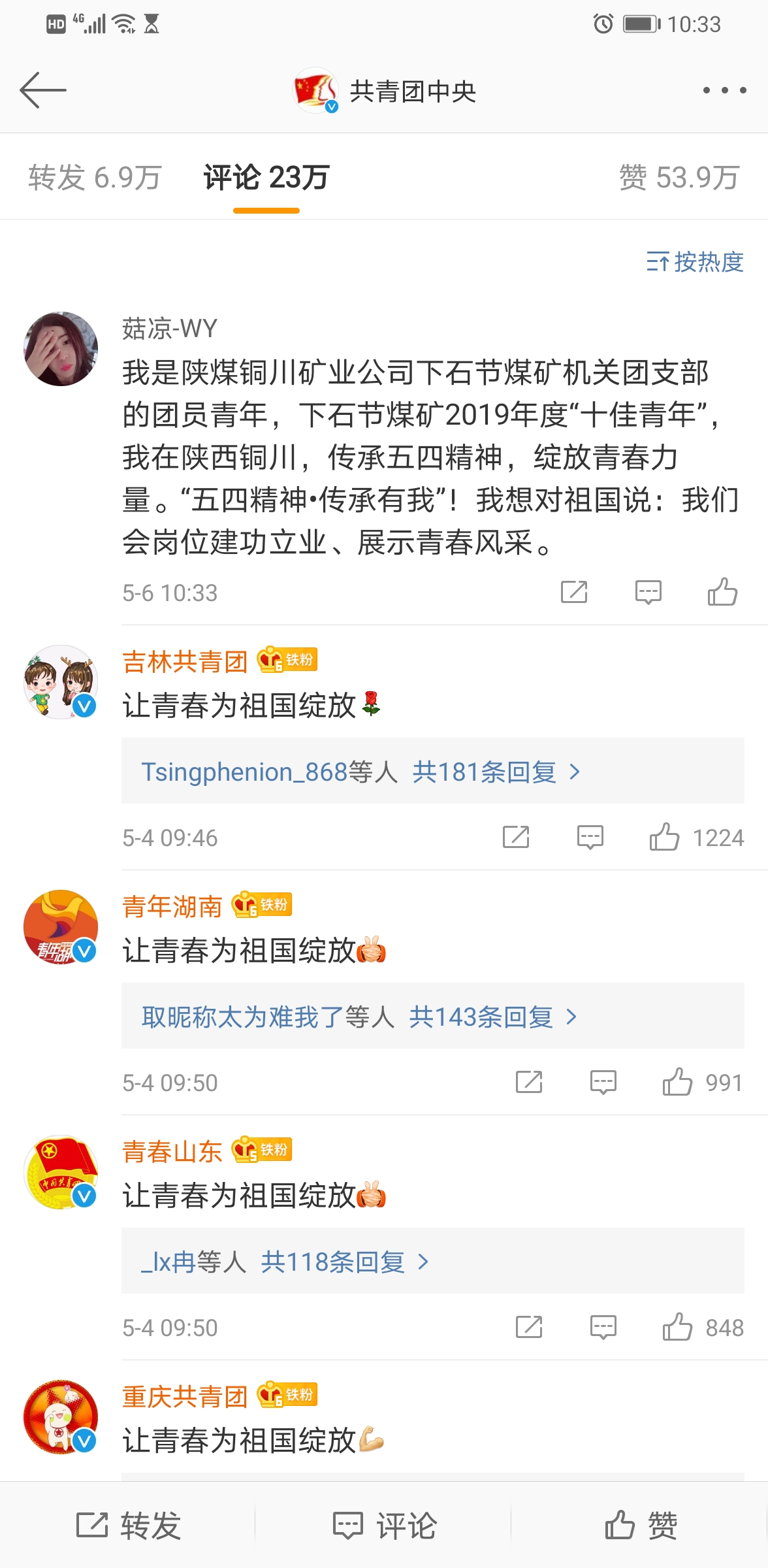 自4月27日公司紀(jì)念五四運(yùn)動(dòng)101周年表彰會(huì)暨團(tuán)員青年“六談”討論會(huì)召開后,各級(jí)團(tuán)組織先后召開會(huì)議表彰先進(jìn),選樹典型,組織團(tuán)員青年認(rèn)真學(xué)習(xí)習(xí)近平總書記的寄語(yǔ),通過緬懷了五四先驅(qū)崇高的愛國(guó)情懷和革命精神,號(hào)召團(tuán)員青年高舉“五四”旗幟,緊貼時(shí)代脈搏,貢獻(xiàn)青春力量,肩負(fù)起黨賦予的光榮職責(zé),團(tuán)結(jié)帶領(lǐng)廣大團(tuán)員青年為新時(shí)代黨和國(guó)家事業(yè)發(fā)展作出新的更大貢獻(xiàn),奮力書寫推動(dòng)公司轉(zhuǎn)型升級(jí)、高質(zhì)量發(fā)展的嶄新青春篇章。