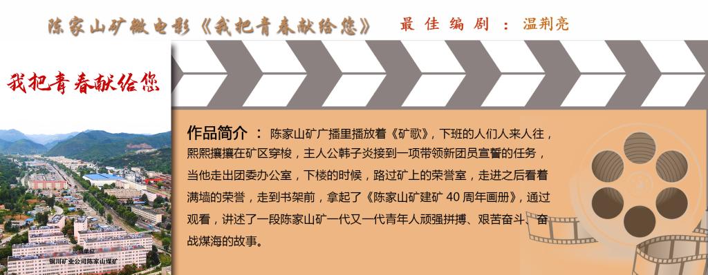 陳家山礦微電影《我把青春獻(xiàn)給您》以公司涌現(xiàn)的“全國(guó)煤炭工業(yè)勞動(dòng)模范”康紅牛、何萬(wàn)明,“全國(guó)煤礦建功立業(yè)優(yōu)秀大學(xué)畢業(yè)生”韓奇為原型,講述了陳家山礦一代代青年頑強(qiáng)拼搏、艱苦奮斗、鏖戰(zhàn)煤海的故事,摘得“最佳編劇”獎(jiǎng)。