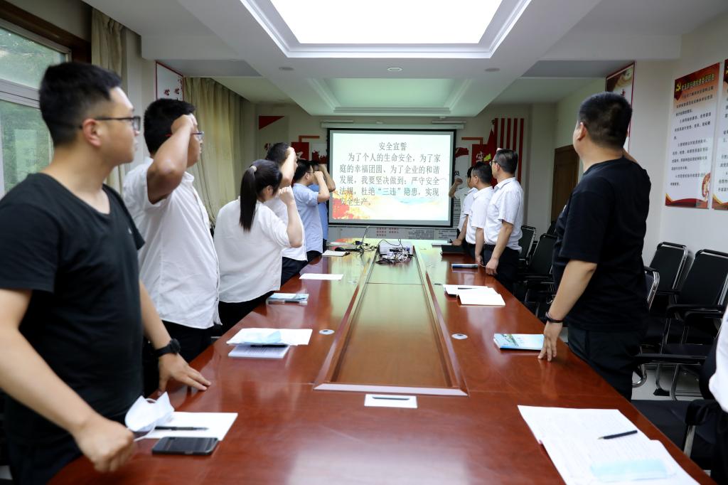 “作為新時(shí)代的青年,我鄭重承諾如下:認(rèn)真學(xué)習(xí)安全生產(chǎn)知識(shí),增強(qiáng)安全意識(shí),提高自救互救和事故預(yù)防應(yīng)急處理能力……”一幅幅形象生動(dòng)的安全生產(chǎn)主題照片吸引眾人目光,一位位團(tuán)員青年集體列隊(duì),安全宣誓,莊重承諾,迅速吹響了安全生產(chǎn)月集結(jié)號(hào)。