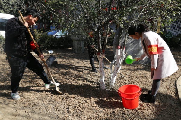 3月12日上午9時許,該礦團委組織青年志愿者們在礦機關樓前集合集體趕赴植樹場地,鮮紅的環(huán)保宣傳標語在蔚藍的天空映襯下顯得生機勃勃,青年志愿者們帶著滿腔熱情立刻行動起來,青年志愿者們相互協(xié)助,領樹苗、領勞動工具、分組、挖坑、挑水、栽樹、埋土、澆水植樹現(xiàn)場氣氛非常熱烈,活動現(xiàn)場到處回蕩著廣大青年志愿者們的歡聲笑語。大家手持鐵鍬,干勁十足,經(jīng)過數(shù)小時的辛勤勞作,將一顆顆充滿生機和希望的樹苗植入地里的同時也植下了自己綠色的希望,看著自己的勞動成果,大家臉上都洋溢著開心的笑容,這笑容是滿足的,是由衷的。這不僅僅是對我們勞動的肯定,更是讓我們理解了這次活動的意義,大家都對能為共建綠色家園出一份力感到無比的光榮和自豪。志愿者們紛紛表示,要響應習近平總書記提出的我們既要綠水青山也要金山銀山的號召,增強關心和參與生態(tài)環(huán)境保護意識,使綠色的主旋律回蕩在廣大青年團員的心中,給廣大青年志愿者們留下了美好的記憶,真正做到“學習雷鋒精神,建設綠色礦區(qū)”。