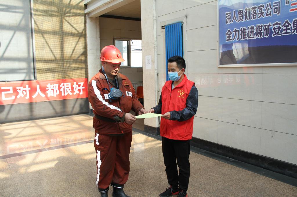 陳家山煤礦團(tuán)委青年志愿者們走進(jìn)學(xué)習(xí)室、車間、班組及井口,為干部職工發(fā)送一份“新安法”福利。