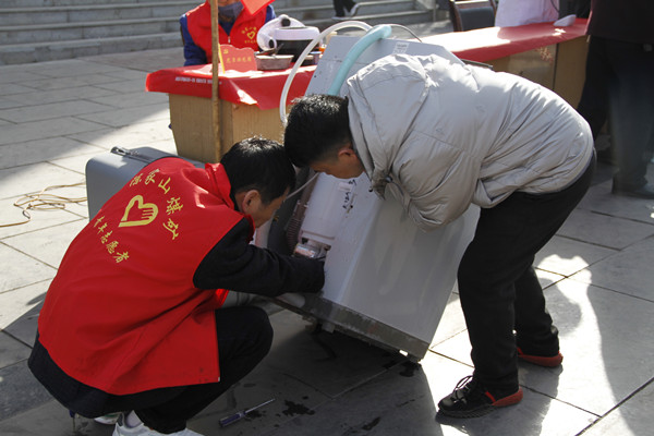“洗衣機(jī)修好了,真是省錢(qián)又省力,真是家門(mén)口有了‘活雷鋒’”。一位老人指著維修好的的洗衣機(jī),高興地說(shuō)。