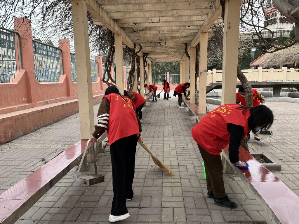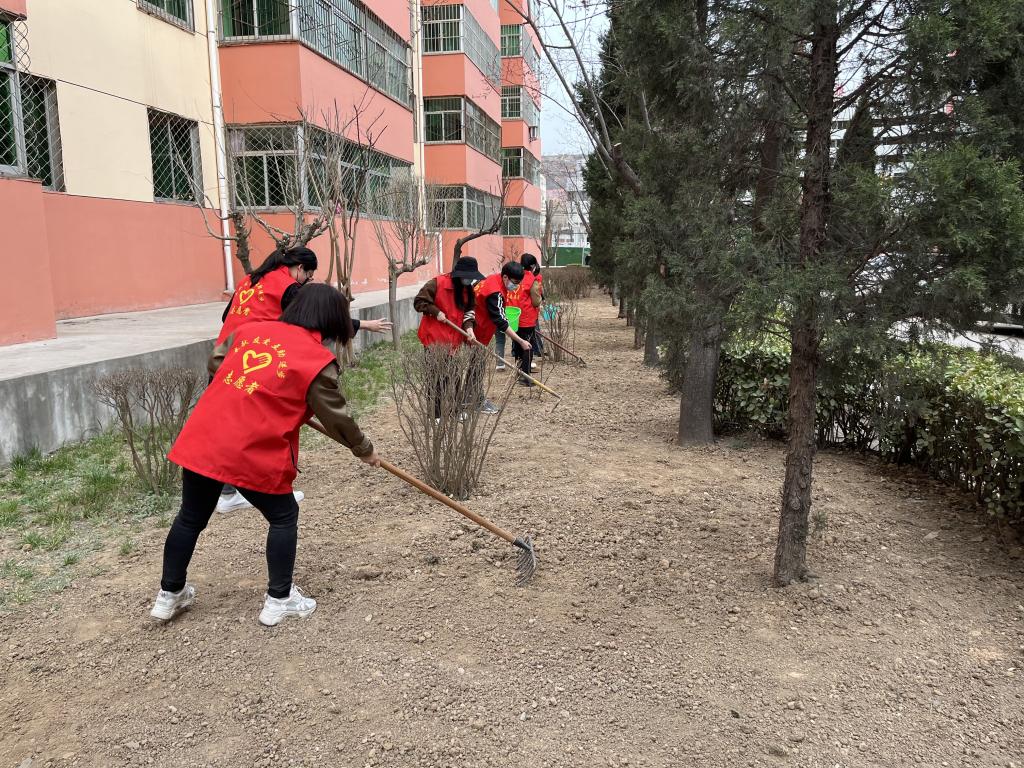 該項目部結(jié)合服務(wù)品質(zhì)提升、國文國衛(wèi)復(fù)審等重點工作,將學雷鋒志愿服務(wù)活動深度融合,組織機關(guān)黨員干部和團員青年下沉一線、深入小區(qū),開展環(huán)境衛(wèi)生整治、服務(wù)品質(zhì)提升志愿服務(wù)活動。志愿者們統(tǒng)一著裝,精神抖擻的走進小區(qū)開展環(huán)境衛(wèi)生整治,大家分工明確,5個小組按劃定的區(qū)域有序進行。清掃衛(wèi)生死角、沖洗路面,擦拭樓道欄桿、樓宇門,擦拭宣傳欄、垃圾桶、健身器械等,志愿者們還聯(lián)合園林工作人員修剪花草、松土保墑,用釘耙平整綠化區(qū)域、對裸露黃土層進行播撒草籽、回填澆灌等,大家各司其職,干勁十足,同時還向?qū)I(yè)師傅請教樹木修剪、栽種等相關(guān)園林知識,活動現(xiàn)場氛圍濃厚。