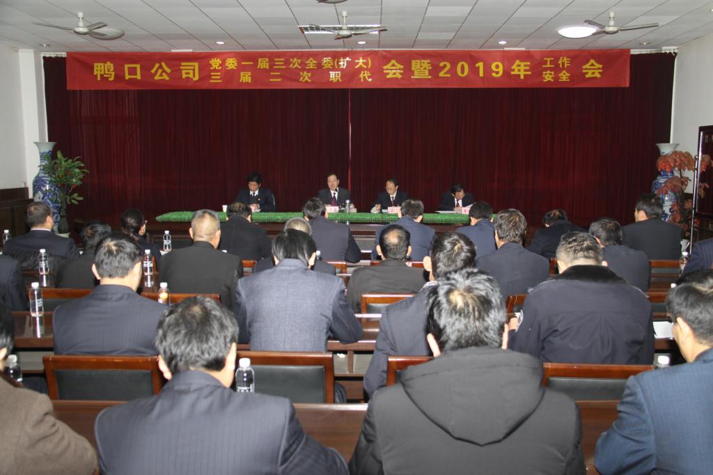 1月14日上午,鴨口公司組織召開了黨委一屆三次(擴(kuò)大)會、三屆二次員工代表大會、2019年工作會暨安全工作會。該公司黨政領(lǐng)導(dǎo)、黨委委員、黨員代表、職工代表及各科室、部門代表50余人參加了會議。
