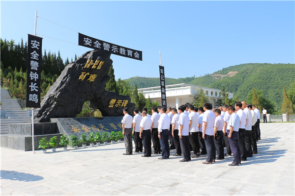 該礦人員排列整齊,懷著沉痛的心情,踏階而行來到警示碑前靜靜肅立。在深沉的哀樂中,向“11.28”遇難礦工敬獻(xiàn)花圈、鞠躬默哀。全體人員舉起右手鄭重宣誓,繞警示碑一周表達(dá)對逝者無盡的追思和深切的緬懷。