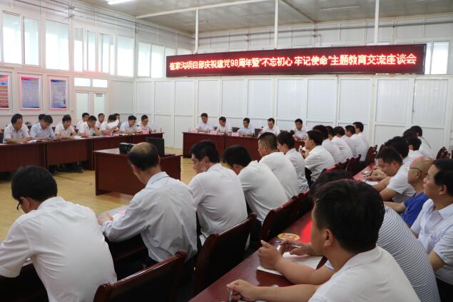 7月1日下午,崔家溝項目部召開慶祝建黨98周年暨“不忘初心 牢記使命”主題教育交流座談會,該項目部領(lǐng)導班子、各副總、各黨支部書記、副書記、副科級以上黨員干部及納新黨員共60余人參加。