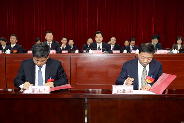 會上,企業(yè)方代表與職工方代表簽訂了公司2020年度《工資集體合同》,表決通過了大會有關(guān)決議,通報了民主評議公司領(lǐng)導(dǎo)班子和領(lǐng)導(dǎo)人員結(jié)果情況。