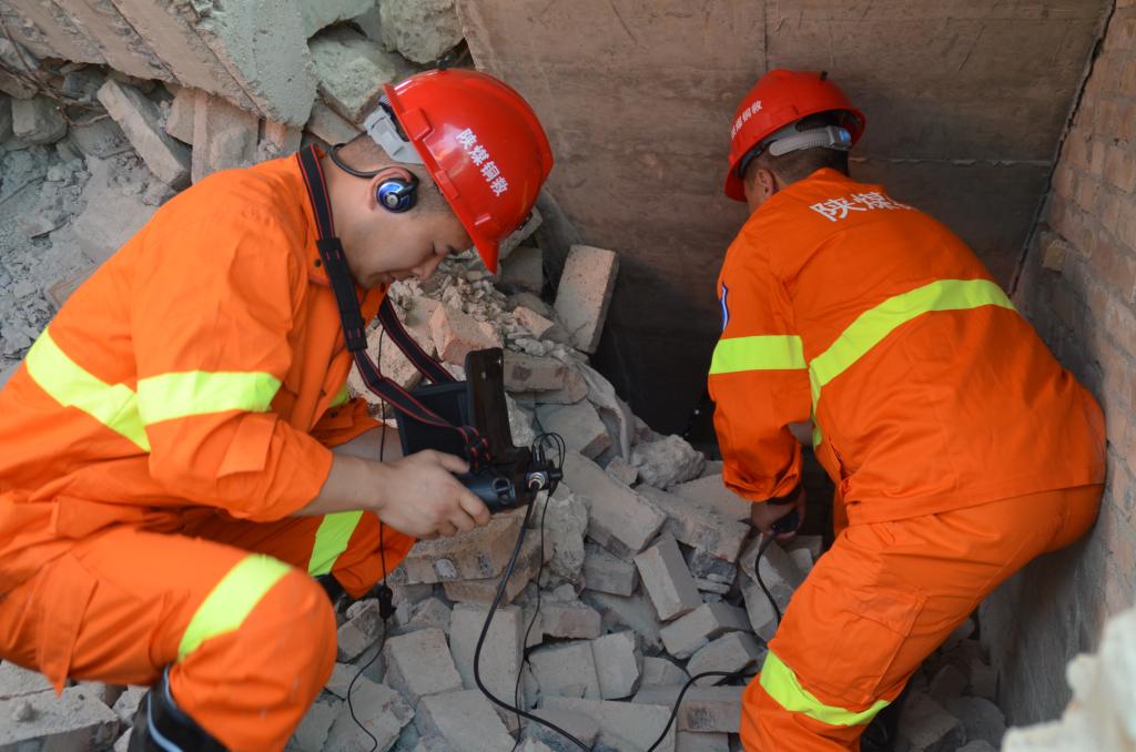 上午10時(shí)19分,救援人員到達(dá)事故現(xiàn)場(chǎng),迅速成立現(xiàn)場(chǎng)救災(zāi)指揮部,并馬上派出偵查小組展開全面?zhèn)刹?。偵查人員首先采取表層敲擊、喊話、聽聲等人工搜尋方式搜索被困人員,對(duì)人工搜尋無(wú)法找到的深層廢墟埋壓被困人員,利用生命探測(cè)儀、蛇眼探測(cè)儀等儀器進(jìn)行搜尋。偵查過(guò)程中,由于道路受阻,現(xiàn)場(chǎng)指揮員立即命令支護(hù)破拆組攜帶破拆工具等器材設(shè)備前往災(zāi)區(qū),通過(guò)剪切鋼筋,切割混凝土,清理碎石雜物,疏通現(xiàn)場(chǎng)道路,為救出被困人員提供了有力保障。