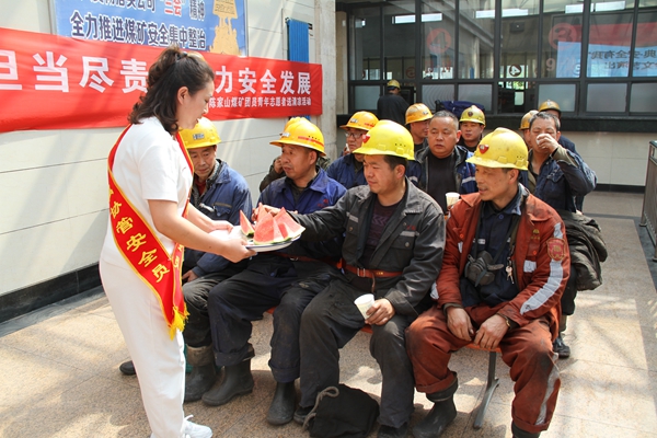六月的盛夏,陽光炙烤著大地,在陳家山礦有這么一支隊伍早已在井口耐心等候,他們帶著志愿者的愛心,帶著“娘家人”的暖心,時刻準備著給每一位一線的職工送來了酷暑里的絲絲清涼。