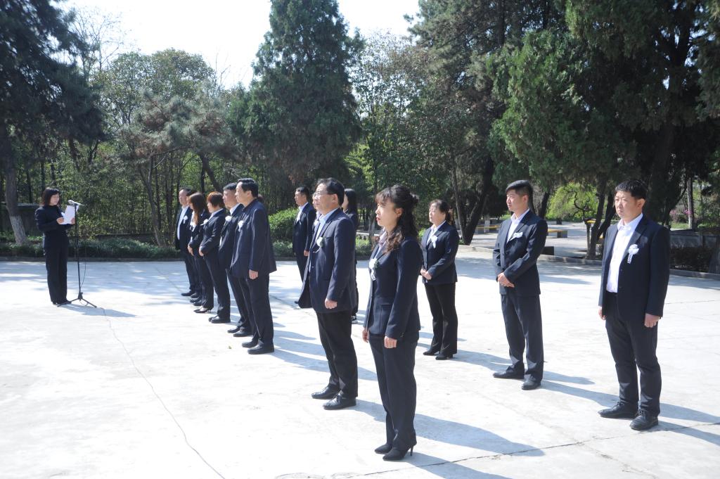 在烈士紀念碑前,大家莊嚴肅立向烈士鞠躬默哀,全體人員瞻仰烈士紀念碑并向烈士敬獻花籃,整理緞帶及致詞,大家將手中的鮮花敬獻烈士,表達崇敬之情。