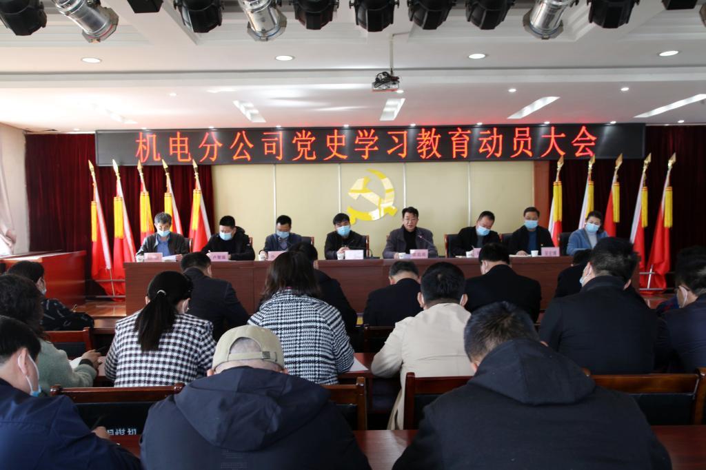 3月22日下午,機(jī)電分公司在該公司機(jī)關(guān)四樓會議室召開黨史學(xué)習(xí)教育動員大會,深入學(xué)習(xí)貫徹習(xí)近平總書記在黨史學(xué)習(xí)教育動員大會上的重要講話精神,全面落實(shí)上級黨史學(xué)習(xí)教育動員大會工作要求,對深入開展黨史學(xué)習(xí)教育進(jìn)行安排部署,動員廣大黨員干部學(xué)黨史、悟思想、辦實(shí)事、開新局,以黨史學(xué)習(xí)教育激發(fā)斗志、堅(jiān)定信念、明確方向、凝聚力量,滿懷信心開啟公司高質(zhì)量發(fā)展新征程。
