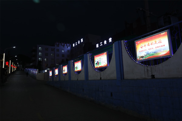與“足跡”主題區(qū)緊密相連的企業(yè)文化墻,弘揚(yáng)陜煤集團(tuán)“奮進(jìn)者”企業(yè)文化,高奏銅煤“奮斗者”文化主旋律,用40米的卷軸繪畫出一列“奮進(jìn)者號(hào)”列車,載著2021的“目標(biāo)、征程、強(qiáng)音、腳步、風(fēng)采”5個(gè)板塊,奔馳向“奮進(jìn)的方向”。三個(gè)“勞動(dòng)·奮斗”文化主題區(qū)首尾銜接、交相呼應(yīng),光影璀璨,點(diǎn)靚礦區(qū),照耀奮進(jìn)征途。