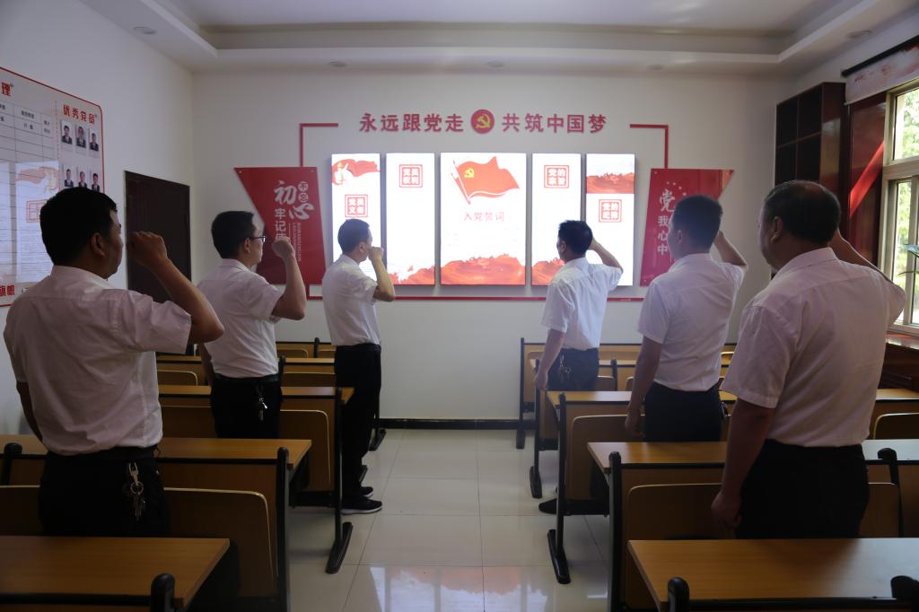“作為一名黨員干部,要帶頭亮身份、作表率,加強日常安全監(jiān)管,以零違章確保零事故,為安全生產(chǎn)提供強有力的保障?!蓖L(fēng)維修區(qū)黨支部副書記馮同安面對黨旗鄭重宣誓。