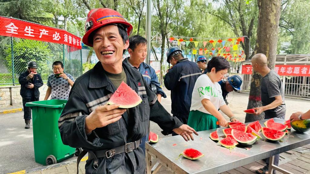 “師傅,辛苦了,吃塊西瓜解解暑。”在下石節(jié)礦井口“送清涼 送關(guān)愛”活動現(xiàn)場,該礦工會的同志為礦工送上了清涼可口的西瓜和防暑降溫品。職工們紛紛表示,企業(yè)關(guān)愛職工,我們更要繃緊安全弦,干好標(biāo)準(zhǔn)活,全力促生產(chǎn)。