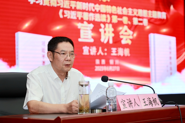 宣講中,王海帆緊扣學(xué)原文、讀原著、悟原理,對(duì)《習(xí)近平著作選讀》第一卷、第二卷中關(guān)于“全面落實(shí)黨內(nèi)監(jiān)督責(zé)任”“發(fā)揚(yáng)斗爭精神,增強(qiáng)斗爭本領(lǐng)”的重要論述,作了生動(dòng)宣講和深入講解,并以《深刻領(lǐng)會(huì)‘六個(gè)必須堅(jiān)持’,努力提升理論水平,踐行忠誠干凈擔(dān)當(dāng)》為題,從“準(zhǔn)確把握‘六個(gè)必須堅(jiān)持’的立場觀點(diǎn)方法,著力提升政治、思維、實(shí)踐‘三種能力’,在知行合一中強(qiáng)化忠誠干凈擔(dān)當(dāng)”三個(gè)方面,聚焦深入學(xué)習(xí)領(lǐng)會(huì)習(xí)近平新時(shí)代中國特色社會(huì)主義思想的世界觀、方法論,以學(xué)習(xí)與工作的協(xié)同推進(jìn),理論與實(shí)踐的緊密融合,為大家上了一堂精彩的黨課。