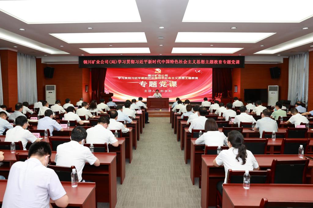 劉水利在授課時,以《感悟思想偉力,凝聚奮進力量,以主題教育成效推動銅煤高質(zhì)量發(fā)展》為題,從“開展集中教育是黨自我革命的重要途徑;深刻認識開展主題教育的重大意義;聚焦六大著力點切實增強開展主題教育的政治自覺思想自覺行動自覺;扎實開展好主題教育奮力譜寫銅煤高質(zhì)量發(fā)展新篇章”四個方面,緊扣以習(xí)近平新時代中國特色社會主義思想凝心鑄魂,以黨的創(chuàng)新理念武裝頭腦、指導(dǎo)實踐、推動工作,以主題教育煥發(fā)的力量加快企業(yè)高質(zhì)量發(fā)展,為黨員干部講授了一堂融理論指導(dǎo)性、工作針對性、實踐操作性為一體的生動黨課。
