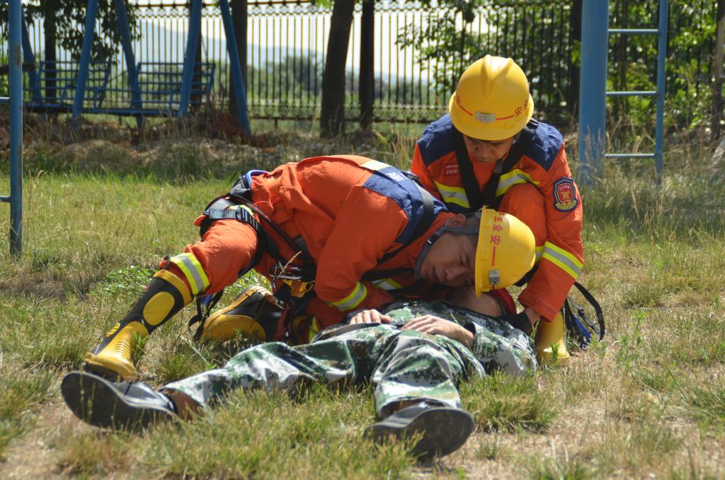 “報(bào)告!基坑附近發(fā)現(xiàn)一名昏迷傷員,初步判斷傷員小腿骨折,腰椎骨折,頭部擦傷”,搶險(xiǎn)組進(jìn)入基坑勘查后發(fā)現(xiàn)被困人員后,醫(yī)療救治組立刻對(duì)被困人員骨折部位進(jìn)行固定處理,對(duì)擦傷部位進(jìn)行包扎止血,將傷員安置于擔(dān)架上進(jìn)行固定,利用繩索將傷員送至安全區(qū)域,隨后立即送往醫(yī)院治療。