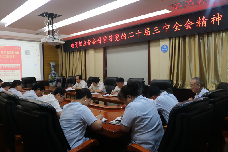 為深入學(xué)習(xí)領(lǐng)會(huì)黨的二十屆三中全會(huì)精神,近日,供應(yīng)分公司積極組織黨員干部職工學(xué)習(xí)黨的二十屆三中全會(huì)公報(bào)和《中共中央關(guān)于進(jìn)一步全面深化改革、推進(jìn)中國(guó)式現(xiàn)代化的決定》,決心以學(xué)習(xí)全會(huì)精神為動(dòng)力,全面助推企業(yè)高質(zhì)量發(fā)展,打贏下半年各項(xiàng)任務(wù)攻堅(jiān)仗。