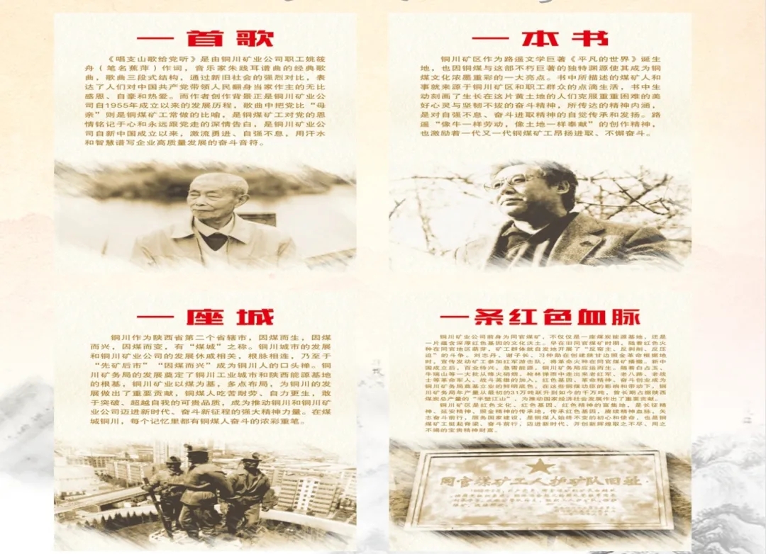 銅煤的70年,是一部植根紅色革命沃土,傳承紅色精神血脈的奮進史。七十載奮進征程中,銅煤留下了紅色文化的鮮明標識、紅色基因的精神底色,生動見證著幾代銅煤礦工“堅定不移聽黨話、矢志不渝跟黨走”的初心使命和忠誠擔當。