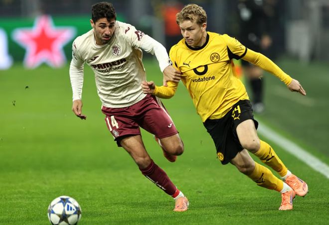 多特坐鎮(zhèn)主場(chǎng)優(yōu)勢(shì),開場(chǎng)不久防線受到比利亞雷亞爾的持續(xù)沖擊。開場(chǎng)12分鐘,布坎南補(bǔ)射破門被吹越位在先,隨后一次反擊,布坎南迎球打門被擋出,直到上半場(chǎng)補(bǔ)時(shí)階段,安塞爾米諾送出助攻,吉拉西完成頭球破門,幫助多特1-0先下一城。